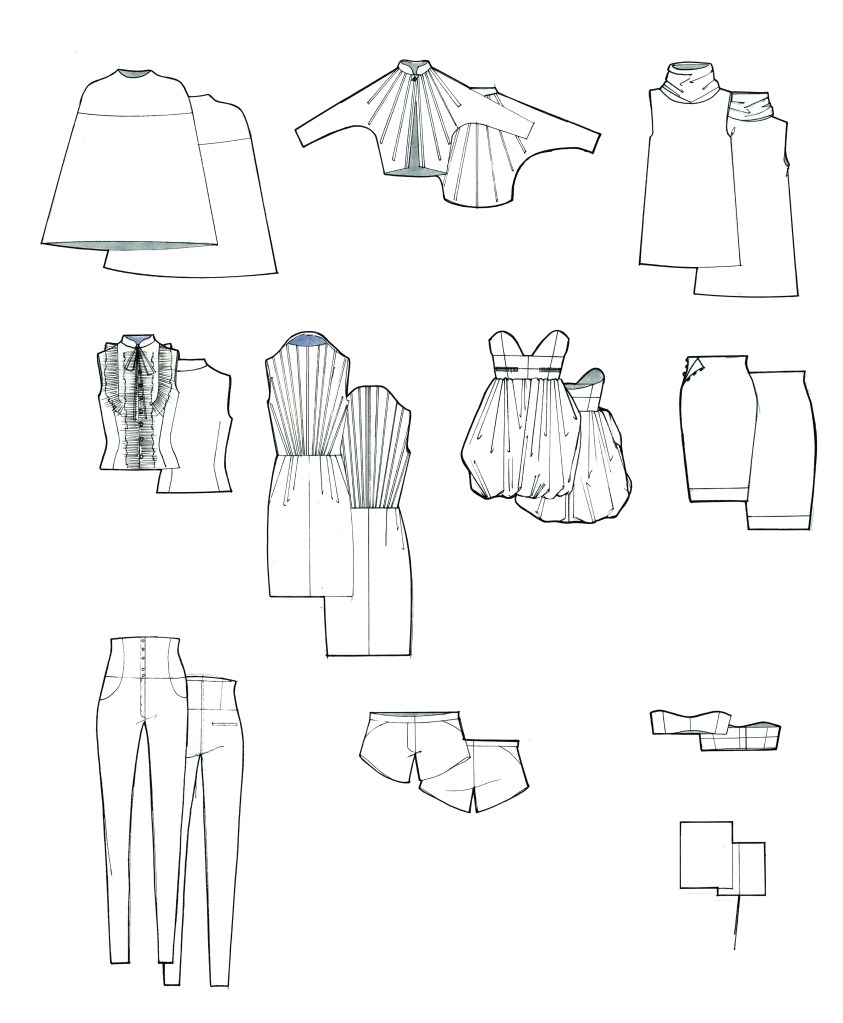A fashion illustration class teaches students how to visually communicate clothing, accessories, and style concepts through drawing and rendering. The course combines elements of figure drawing, garment design, and presentation skills. Students begin by studying fashion figures and proportions, with an emphasis on developing their own personal style. Once the figure is established, they move on to garment rendering techniques, focusing on how fabrics drape, fold, and fit on the body. The class also emphasizes the importance of technical flats as a vital medium for accurately communicating design details to patternmakers and manufacturers.